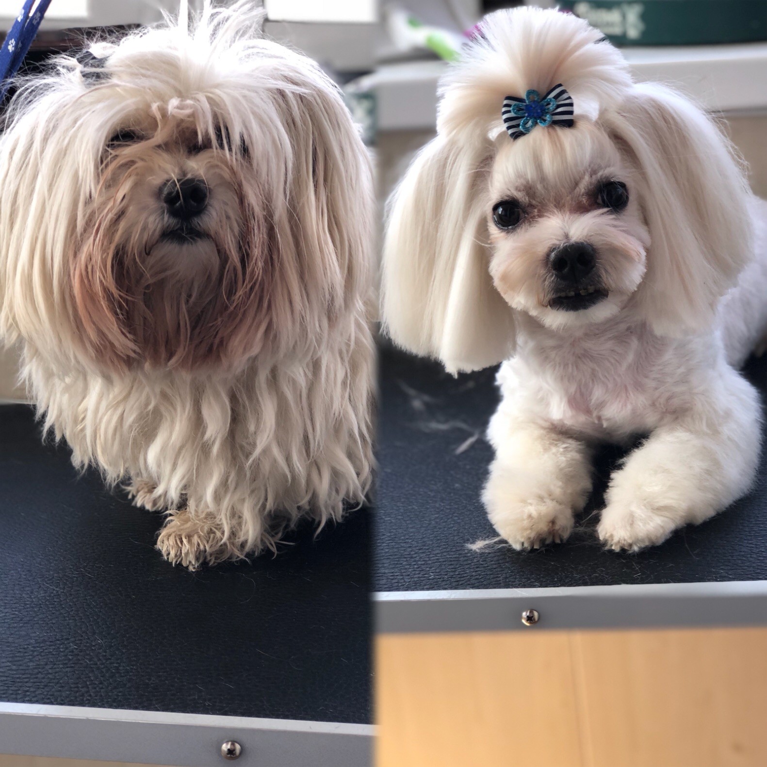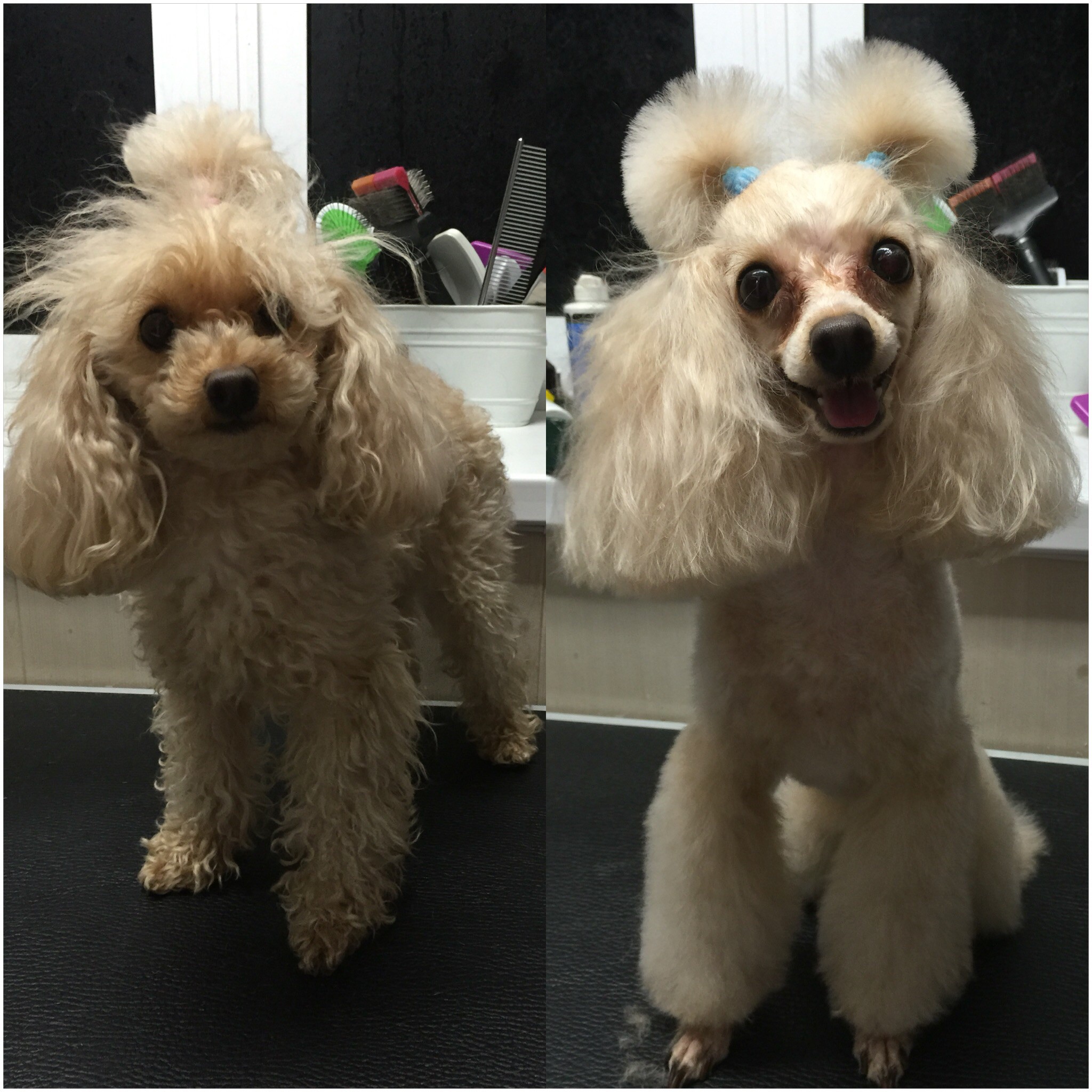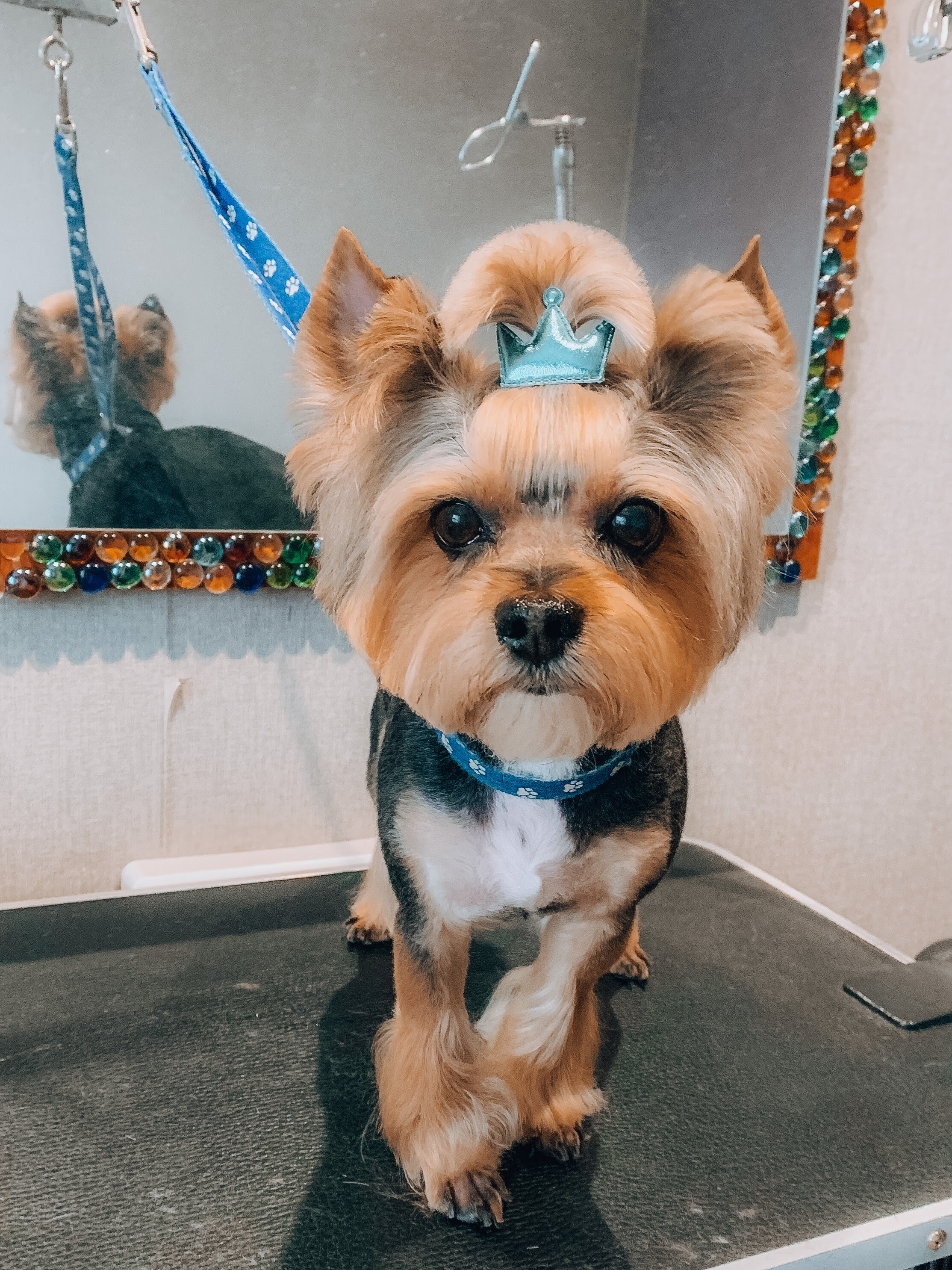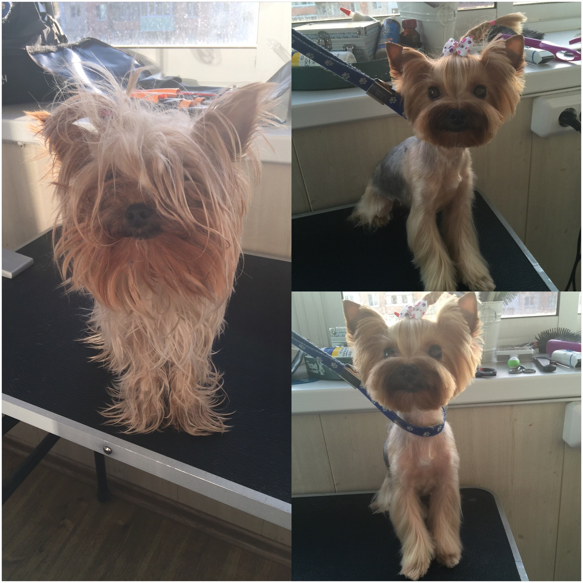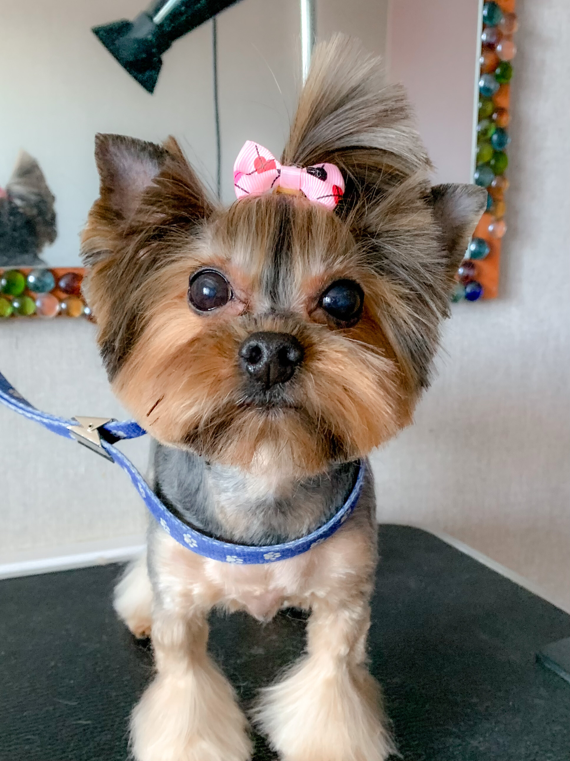 как всегда все на высшем уровне, Юля вошла в наше положение и взяла нас уже очень поздно, за что ей огромное спасибо! собачка как всегда аккуратно пострижена и с серёжками, которые, кстати, мы носим минимум недели две!