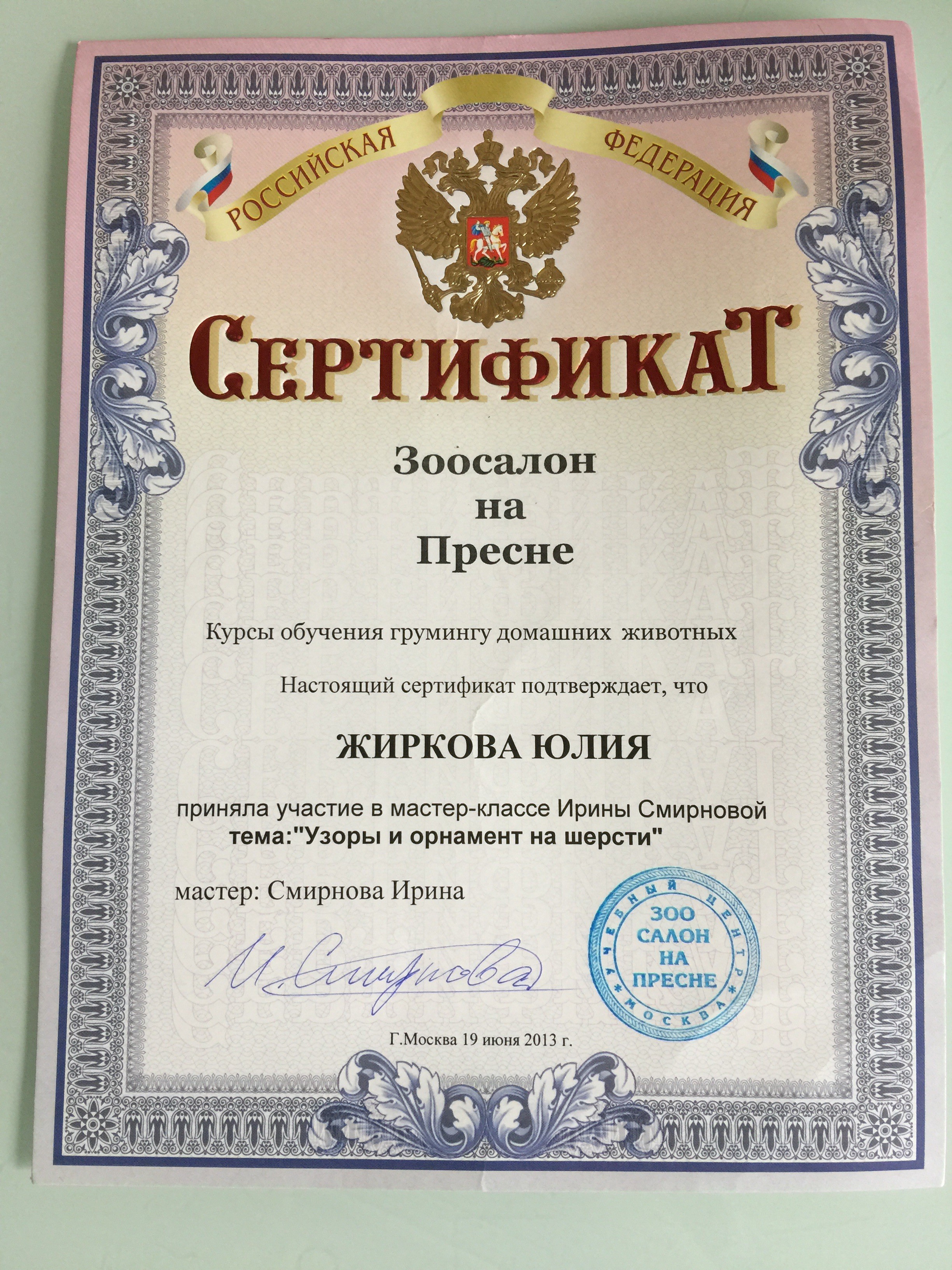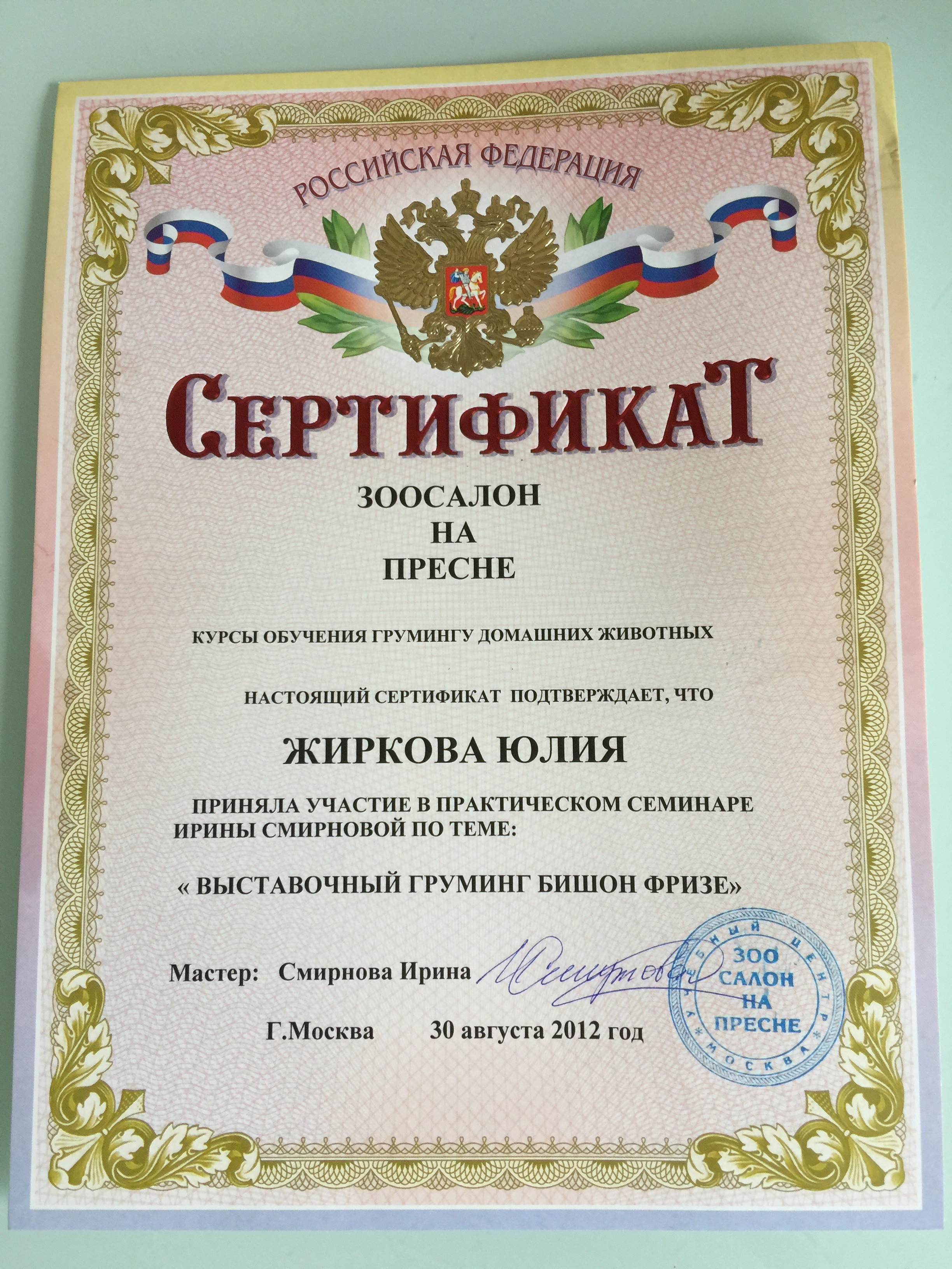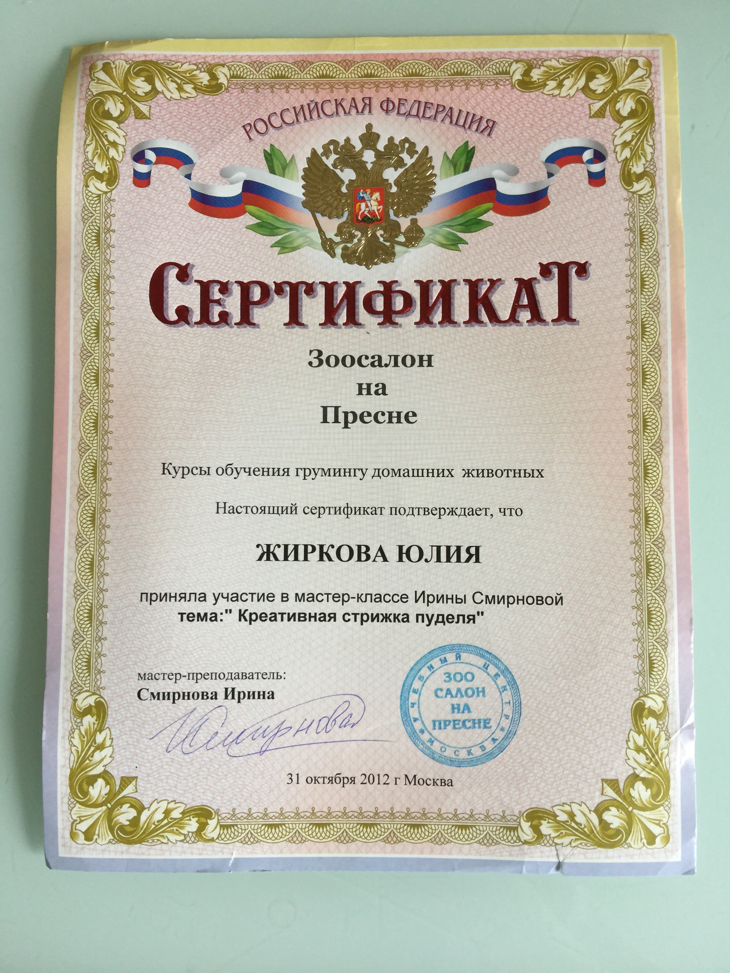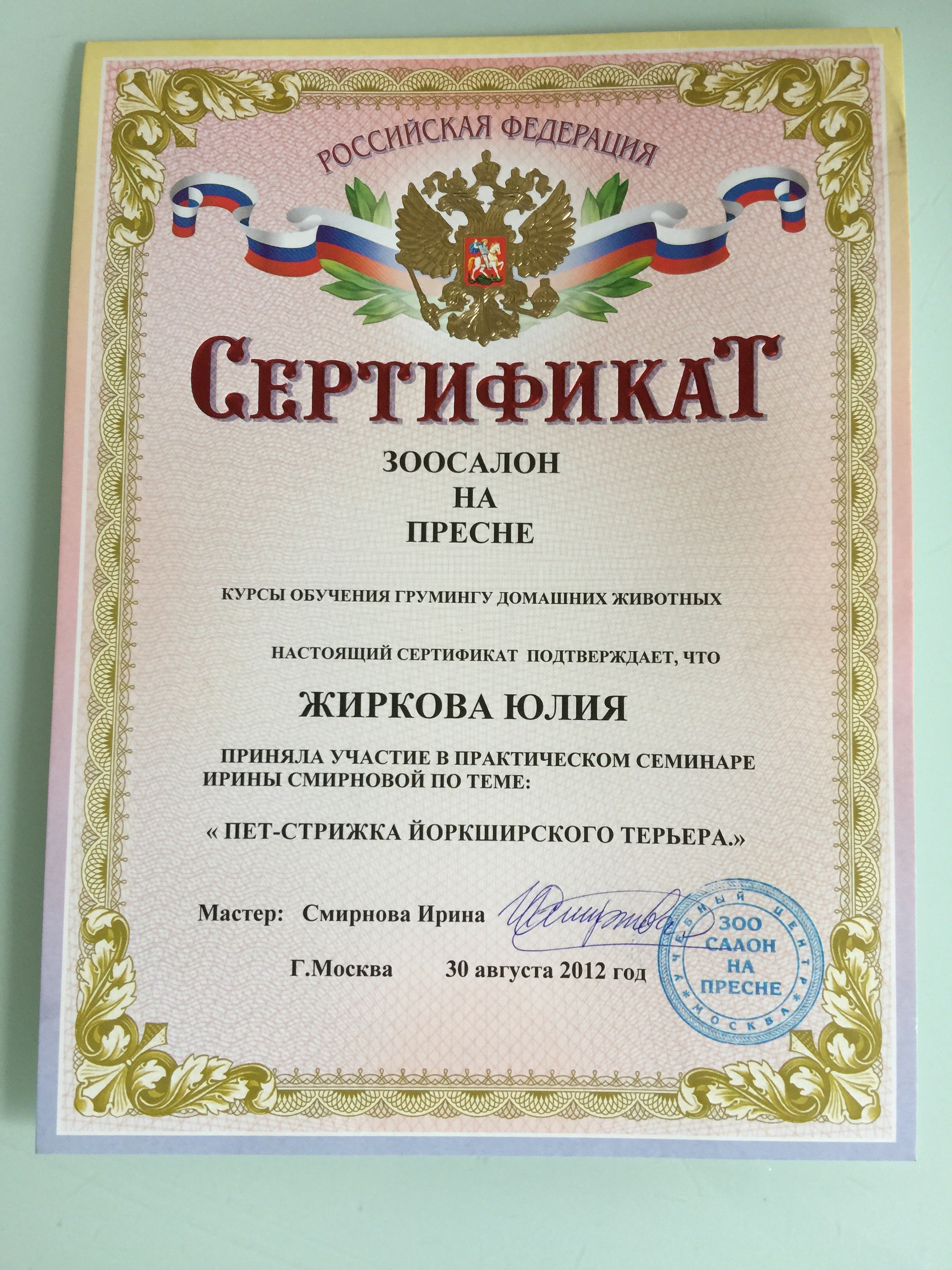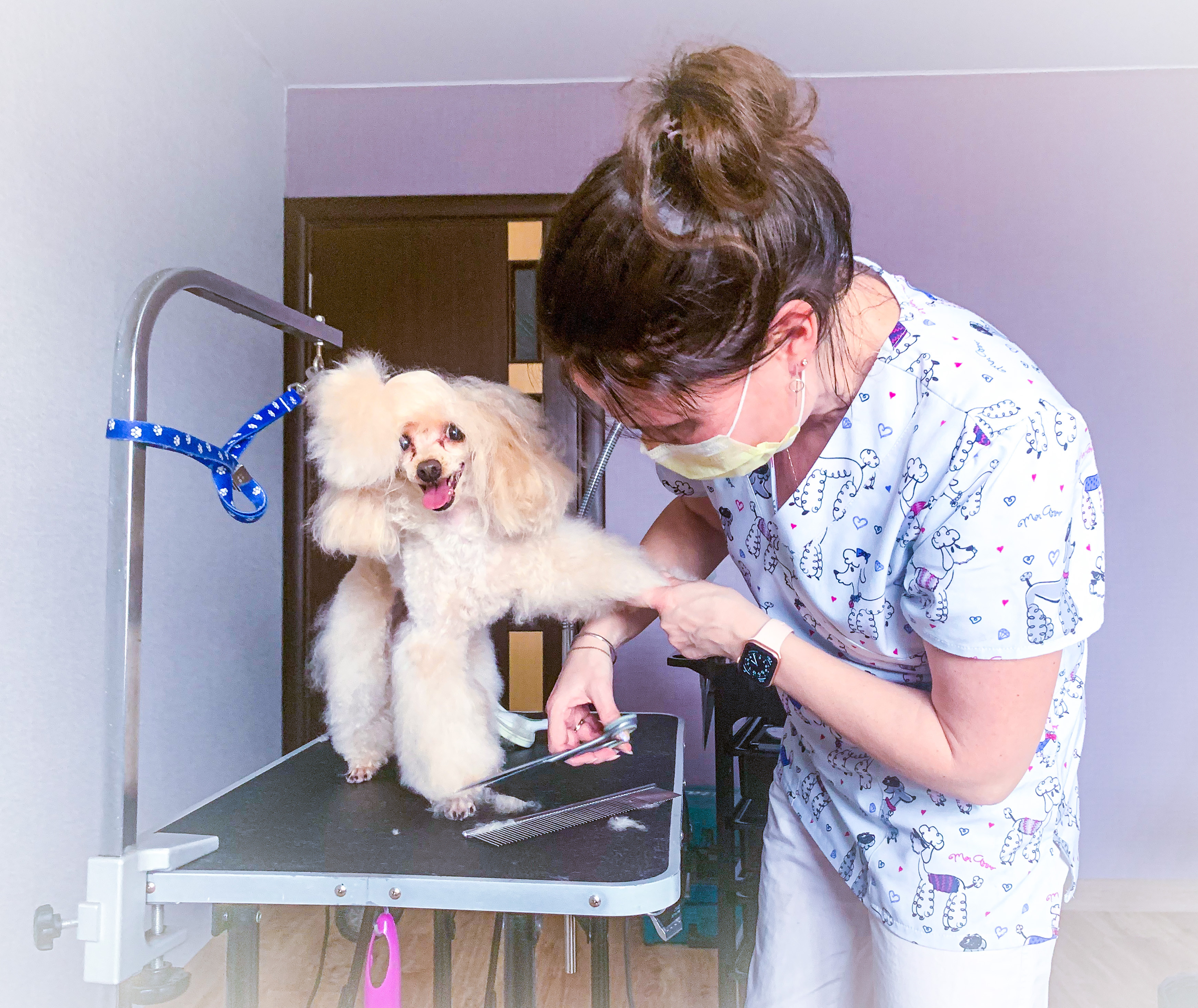 Специалист высшего класса. Шерсть у моей собаки длинная, вьющаяся, причесать невозможно, начинает кусаться, а когти стригли в ветеринарной клинике, втроём держали. Юля с этой задачей справляется, не знаю как. Собачку забираю как из салона красоты,вкусно пахнущую, нигде длинного волоса не торчит, коготочки короткие и лапки аккуратно выстриганы, а это кропотливая работа, с которой справится только профессионал.